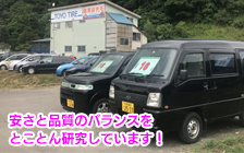 格安中古車の販売を中心に、車検・整備・板金塗装・自動車保険など、お客様のカーライフを総合的に応援しています。